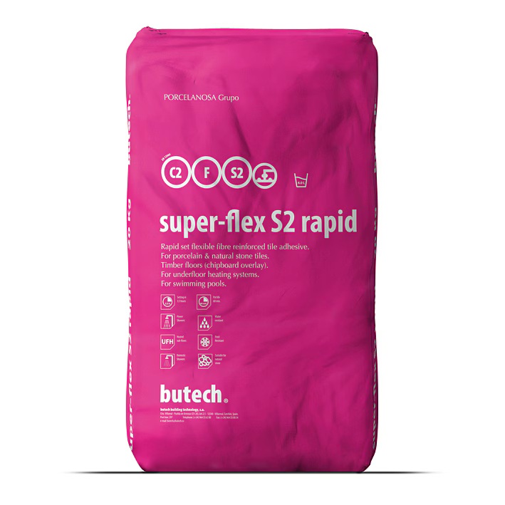 Super-Flex S2 Pro”” on C2-tüüpi TE S2 väga heade omadustega EN12004 plaadiliim. Igasuguste keraamiliste plaatide paigaldamiseks ehitussektoris enimkasutatavatele aluspindadele. Eriti soovitatav suureformaadiliste, õhukeste portselanplaatide paigaldamiseks (ideaalne Porcelanosa XLight slääbidele). Liimil on suurepärane nakkuvus ja tahenemisejärgne elastsus/ deformeeritavus, suurepäraste kasutus- ja töödeldavustingimustega. Tiksotroopne.